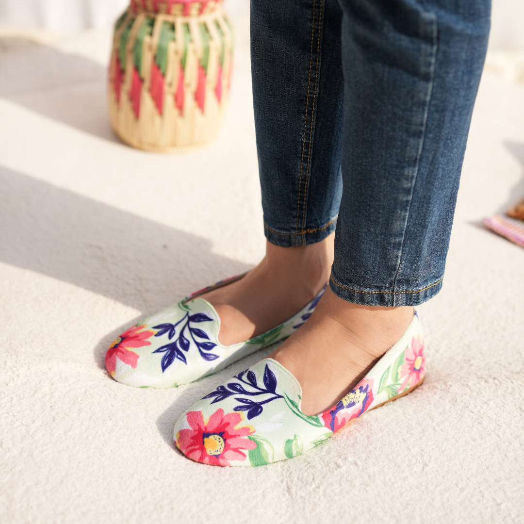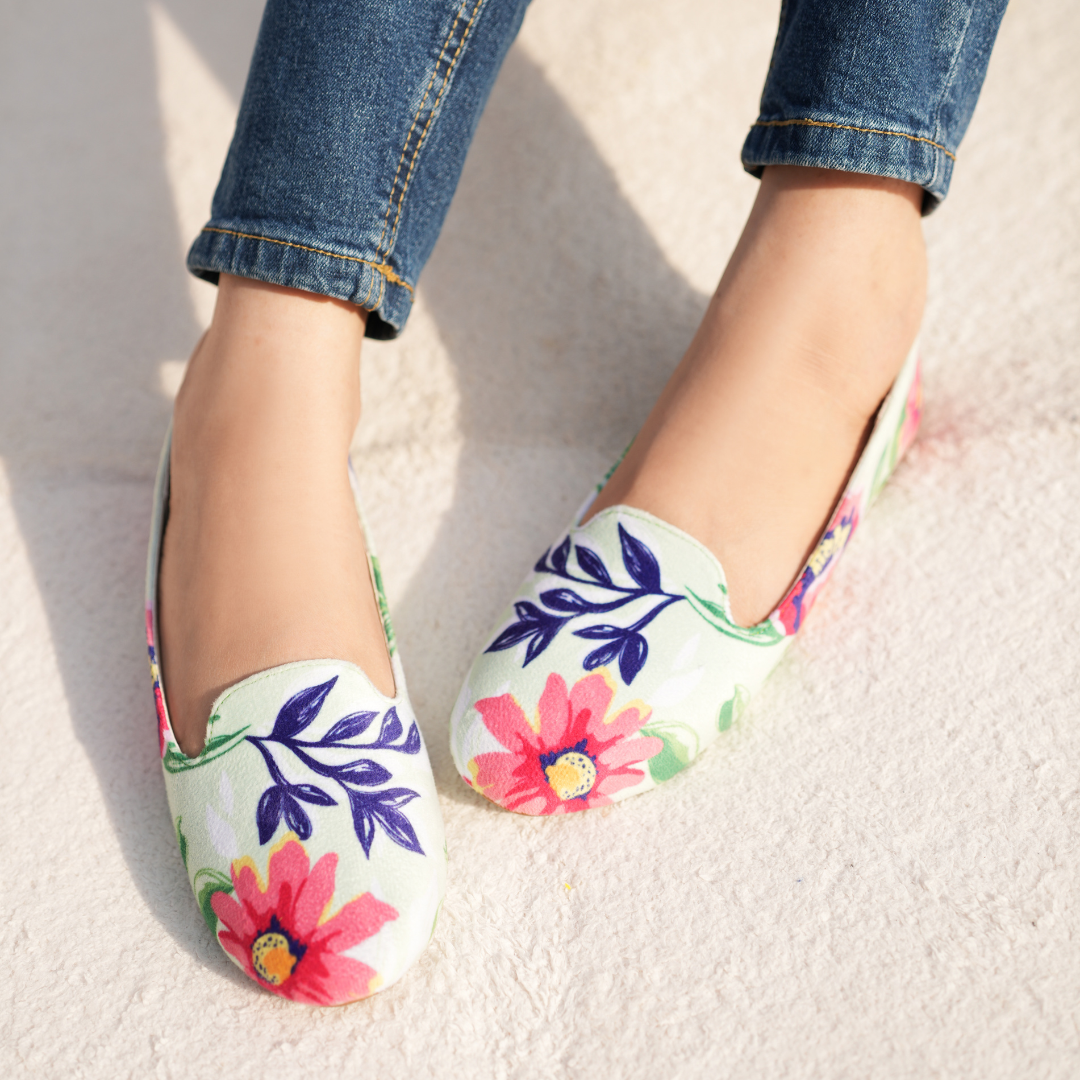 Introducing Printed loafers with printed colorful velvet base . These are super comfy with double cushioning and you can pair it with denims and floral printed trendy dresses.