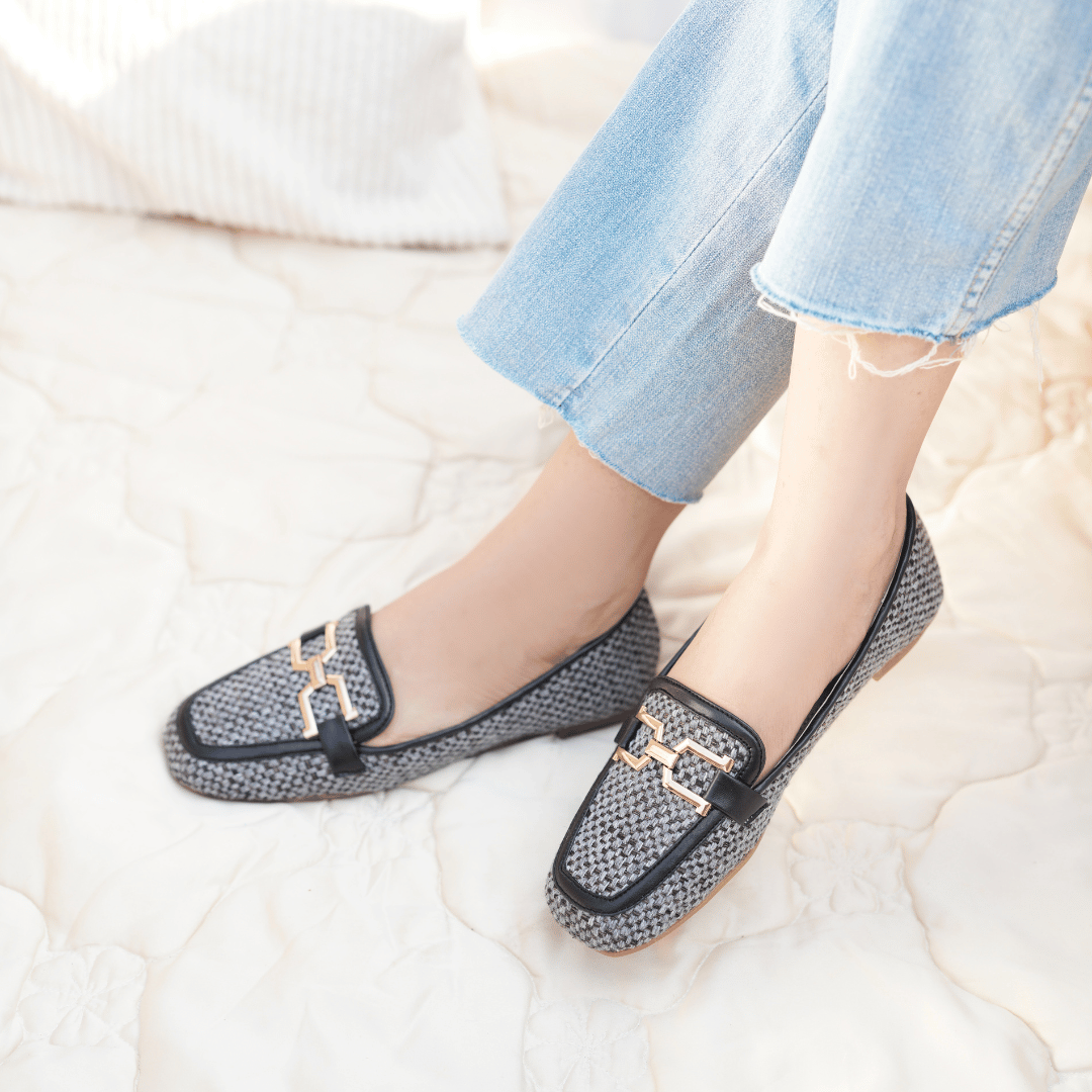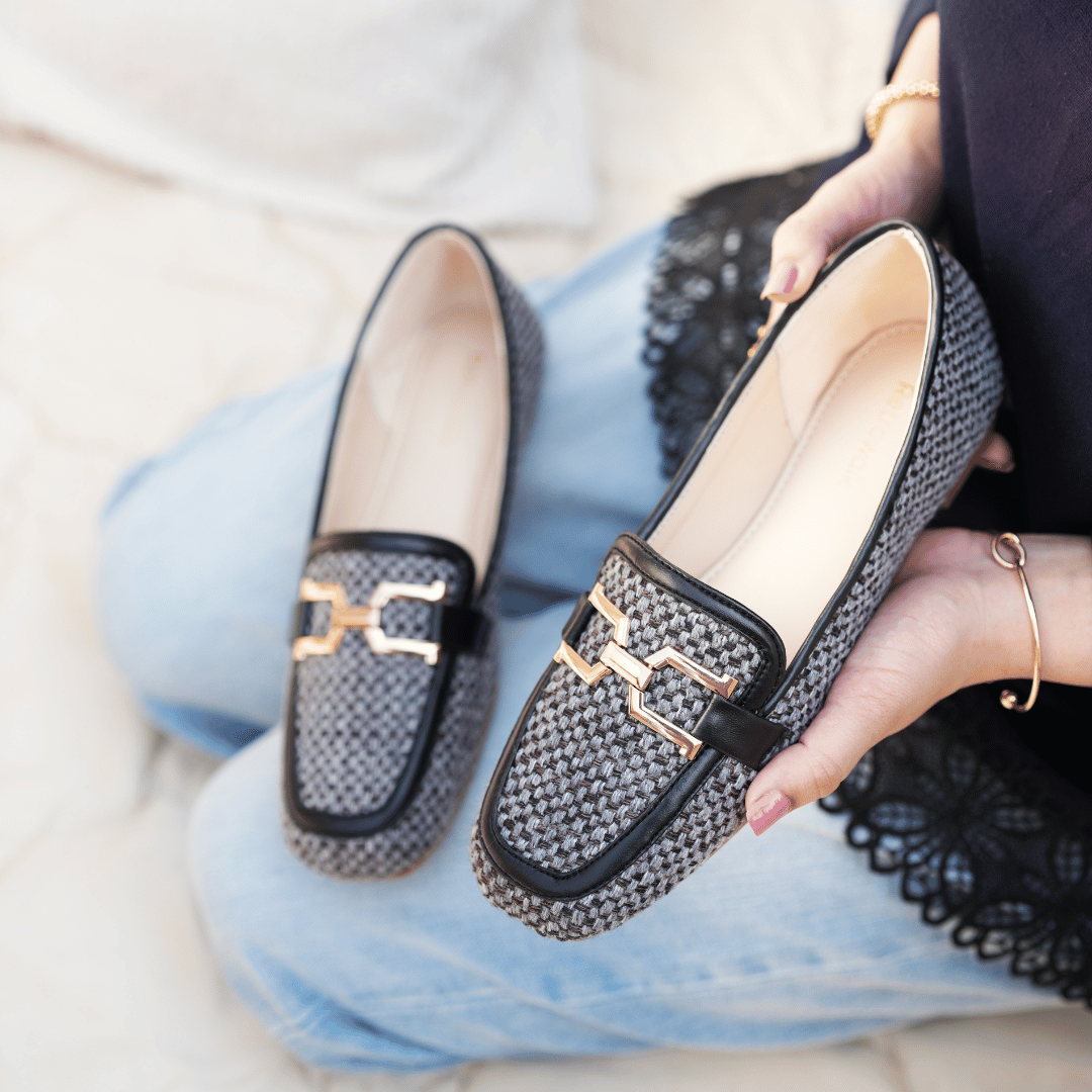 This pair is crafted to elevate your everyday beauty. Grey jute base with black shade detailing to make the perfect pair for day time meeting and casual wear.